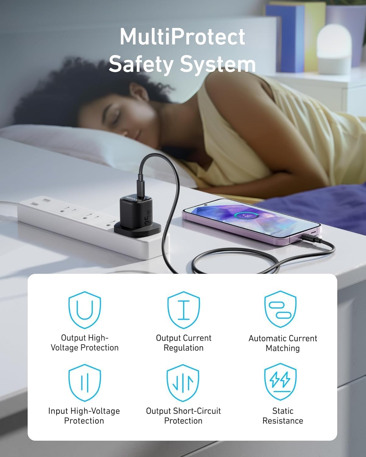 Built with GaN technology and Anker’s MultiProtect safety system (including over-voltage, over-temperature, and short-circuit protection), the Zolo 25W ensures reliable and safe charging at all times. Its foldable plug and ultra-small footprint make it perfect for everyday carry, travel, or office use.