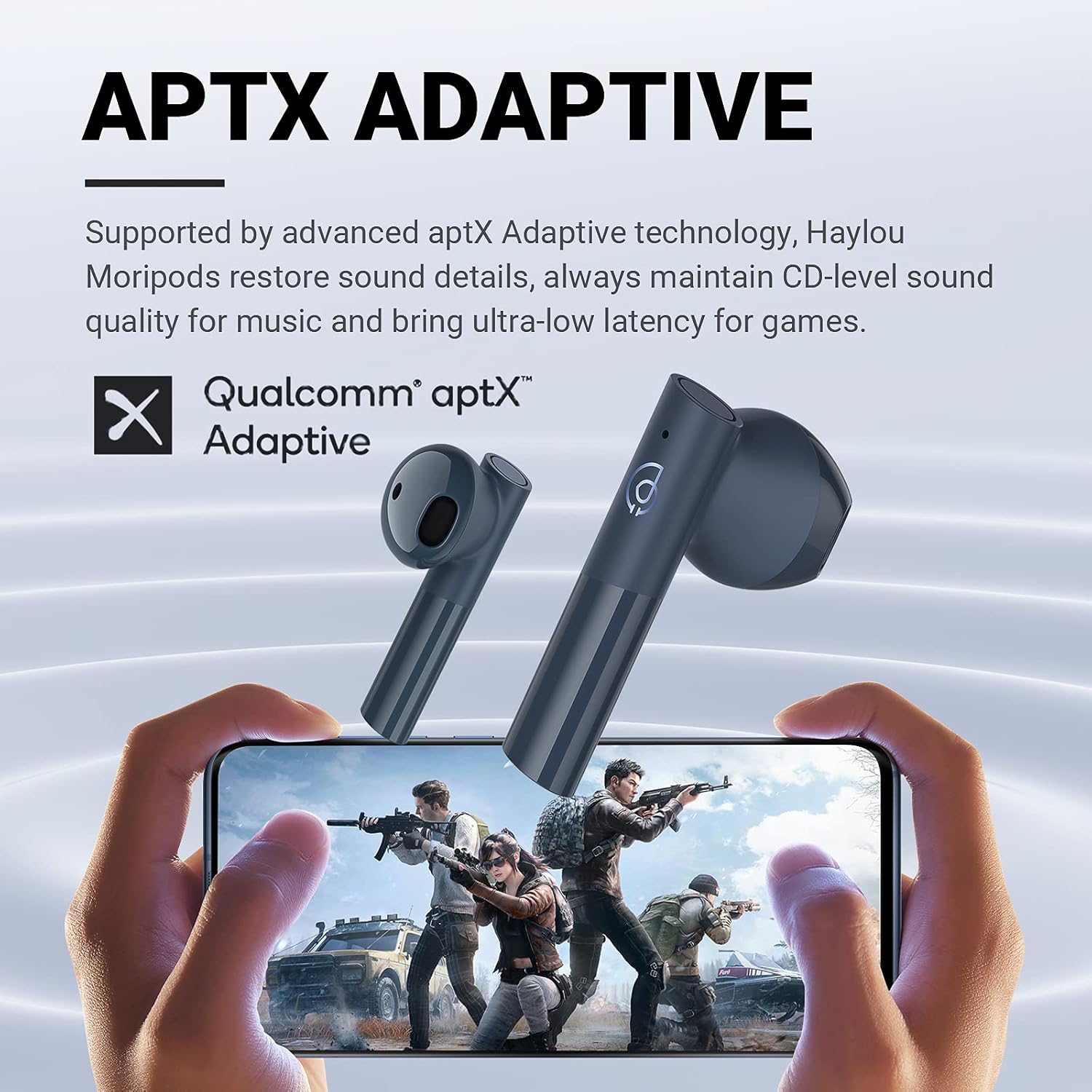 The Haylou MoriPods are stylish, lightweight earbuds designed for crystal-clear sound and comfortable, all-day wear. Using the Qualcomm QCC3040 chip paired with Bluetooth 5.2, they deliver stable, low-latency audio with aptX Adaptive support. These earbuds offer up to 6 hours of playback per charge, and the compact charging case extends total listening time to 24 hours. Enhanced with dual-mic CVC noise reduction and 12 mm dynamic drivers, they’re perfect for music, calls, and gaming on the go. The semi in-ear ergonomic design (just 3.9 g each) and IPX4 splash resistance make them ideal for daily use, workouts, or commuting.