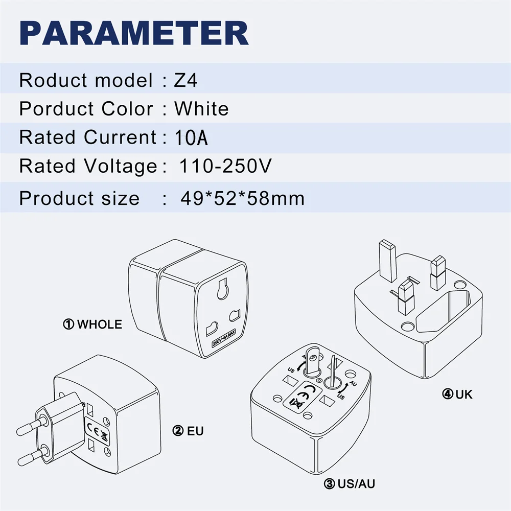 The LDNIO Z4 Universal Travel Plug Adapter is a compact and reliable solution for powering your devices while traveling internationally. Designed to convert plug types across EU, UK, US, and AU standards, it allows you to use your electronic devices safely and conveniently in multiple countries.